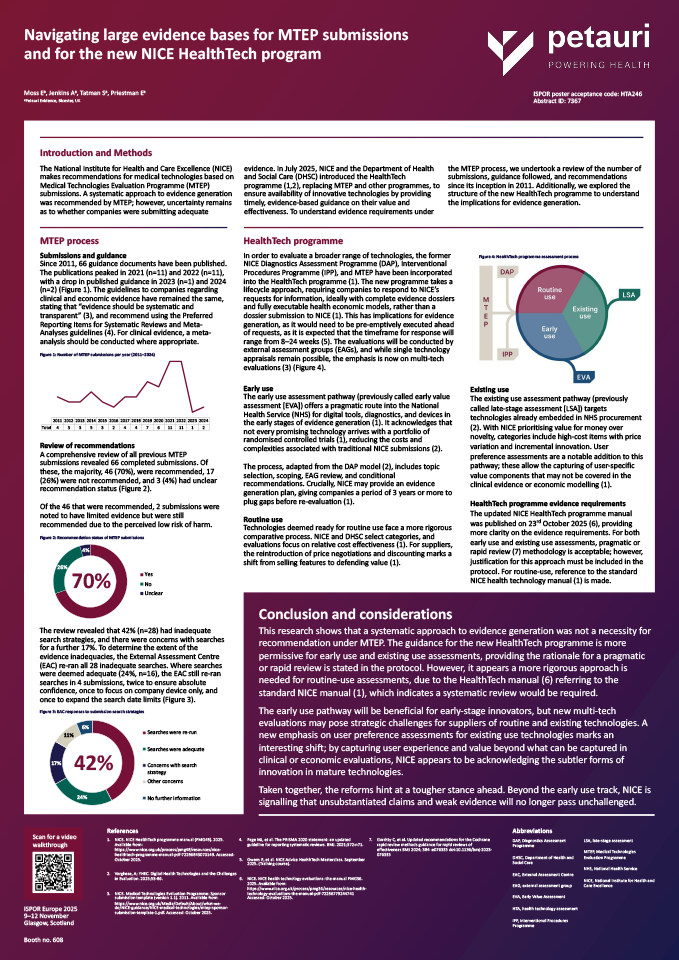The Petauri Evidence team will be presenting this research at ISPOR Europe in Glasgow, in Poster Session 4 on Tuesday 11th November.