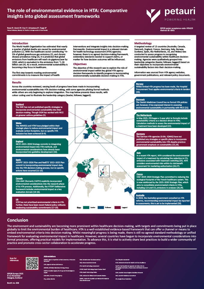 The Petauri Evidence team will be presenting this research at ISPOR Europe in Glasgow, in Poster Session 5 on Wednesday 12th November.
