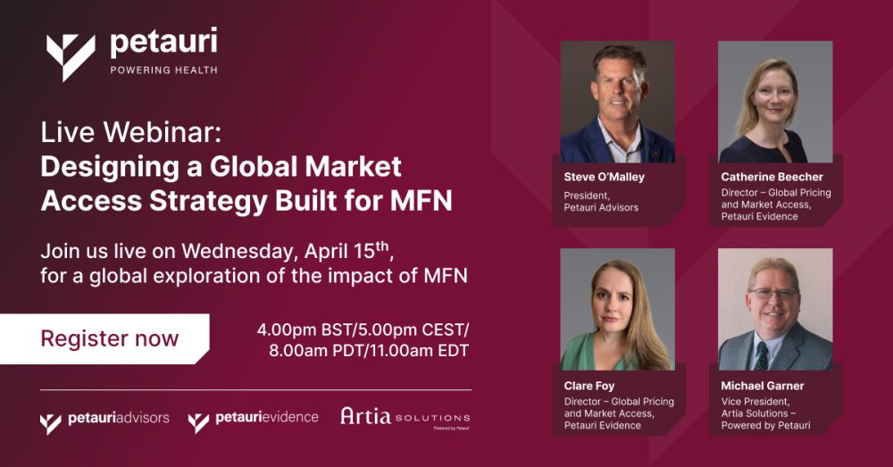 The webinar is free and open to all market access, HEOR, strategic, and commercial teams in Pharmaceutical, Medtech, and Diagnostics companies. We also welcome attendees from healthcare systems. Some colleagues from other organizations may attend at the discretion of Petauri.